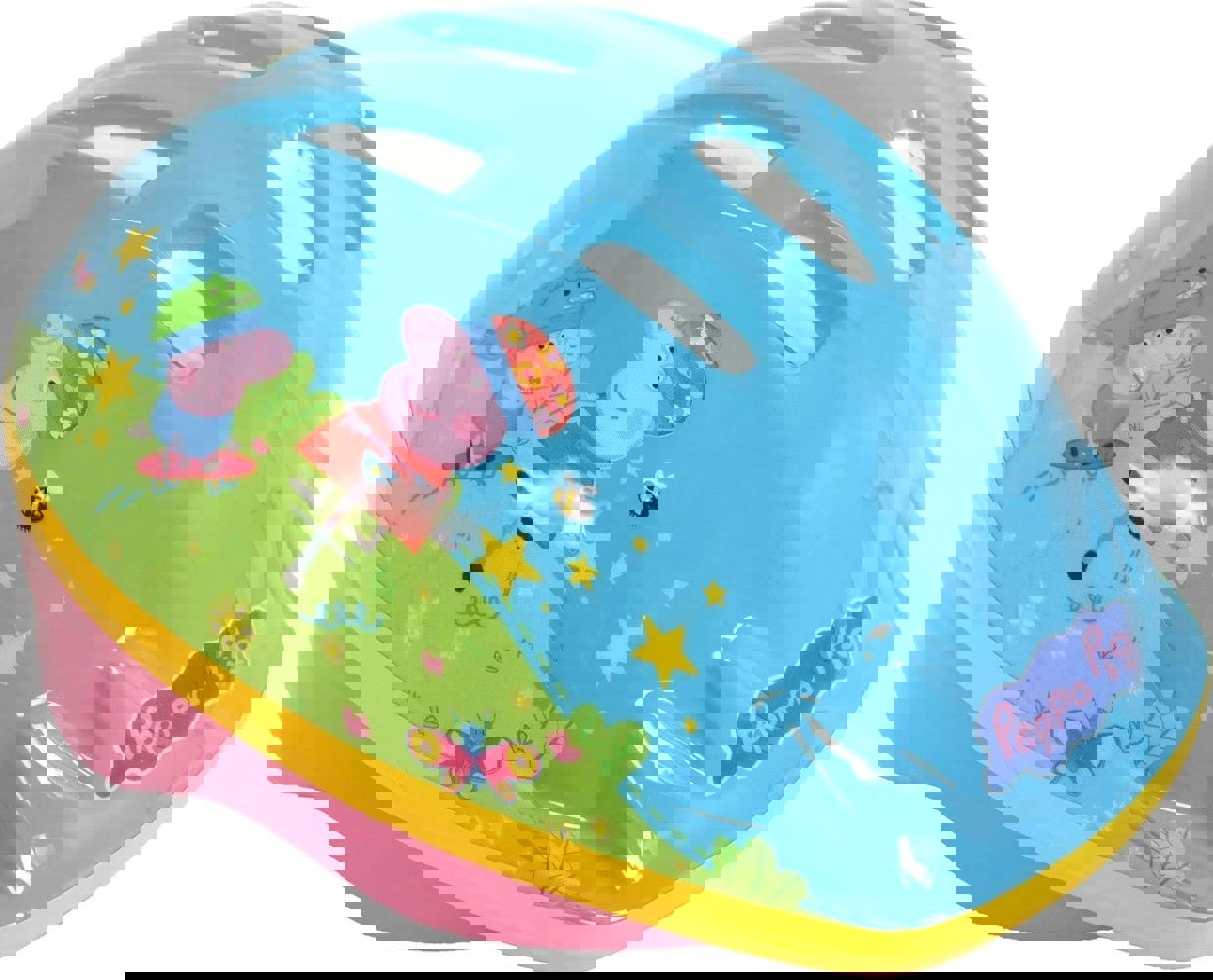 Pedal into safety and style with the Peppa Pig Safety Helmet! This helmet isn't just about protecting your head it's about doing it with flair! Decked out in delightful Peppa Pig decals, it's like having your own little adventure buddy right on your head. But don't let the cute design fool you; this helmet means business! Crafted with a durable EPS inner material that's been safety tested to the highest standards, it's tough enough to handle all your outdoor escapades. Plus, with its adjustable size dial, removable foam padding, and adjustable chin strap, you can customise the fit for ultimate comfort and security. And let's not forget about ventilation! The ventilated shell keeps your head cool and fresh, so you can stay cool as a cucumber even on the hottest days. So, whether you're cycling, scootering, or skating, ride confidently knowing you've got Peppa Pig watching over you every step of the way! Safety first, fun always!