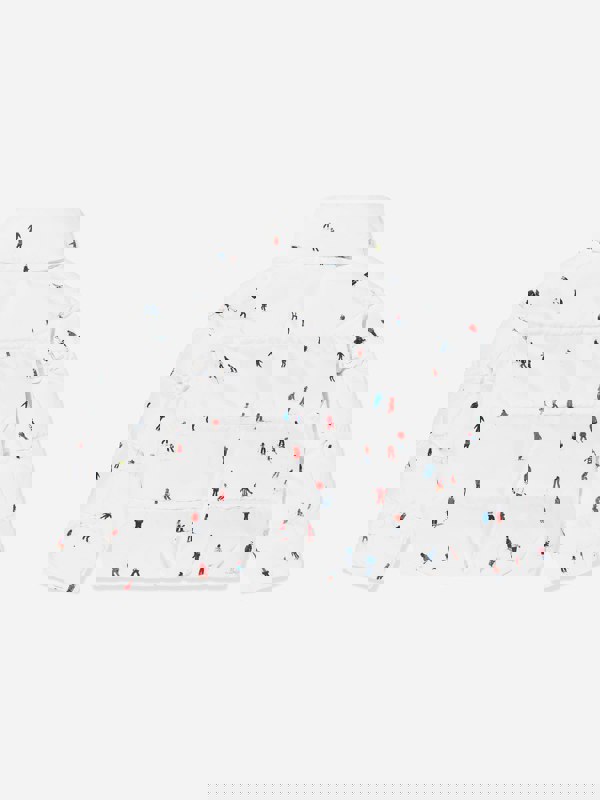 Perfect Moment Kids Dede Ski Print Nuuk Puffer Jacket in white. Part of the AW2025 collection, this unisex style suits both boys and girls. The design combines a puffer jacket silhouette with a Dede ski print and a clean white colourway.