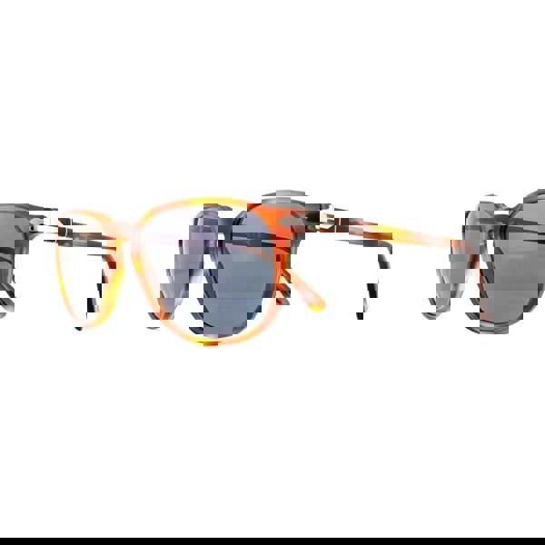 Persol Sunglasses 3019S 96/56 Terra Di Siena Light Blue have a round lens shape with the typical Persol style and feature the usual Persol arrow motif on the temple