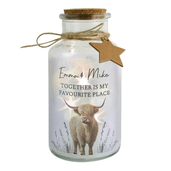 Personalised Highland Cow LED Light Up Jar