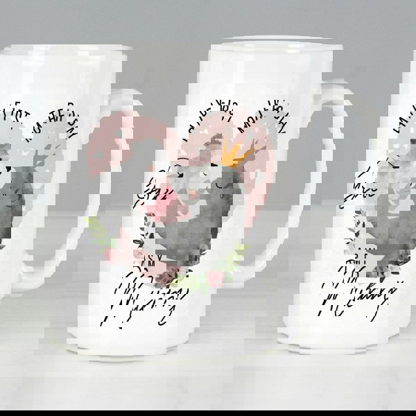 The mug can be personalised with a name on the front up to 12 characters. You can then personalise with 4 lines on the back, 25 characters per line.