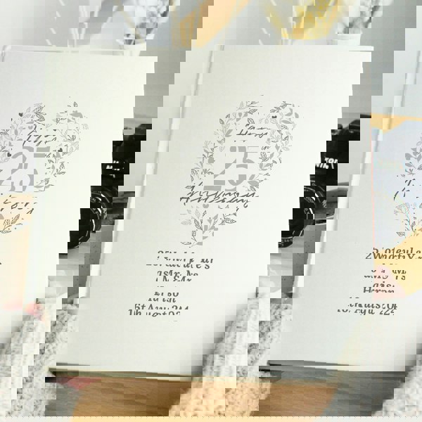 Featuring our "25th Anniversary" design, you can then personalise with a special message, over 4 lines of 30 characters per line.