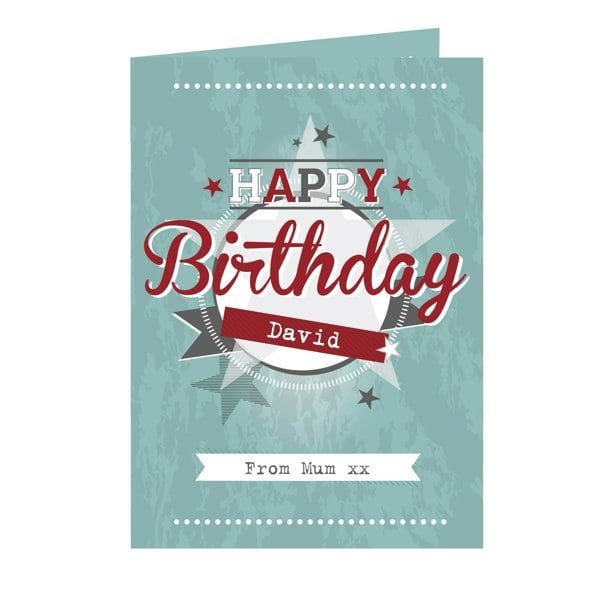 The card can be personalised on the front. The word 'HAPPY' is fixed.