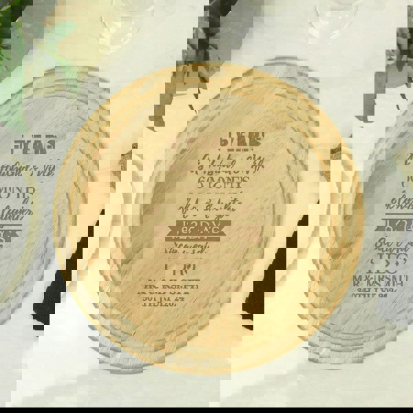 This Personalised Five Years Married Chopping Board makes the perfect 5th Anniversary present.