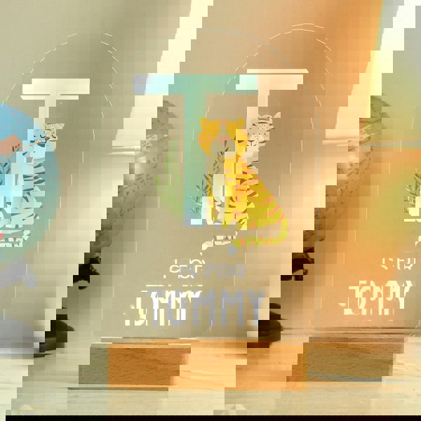 You can personalise this LED light with a name up to 12 characters. The first character will also automatically appear as part of the design with an animal.
