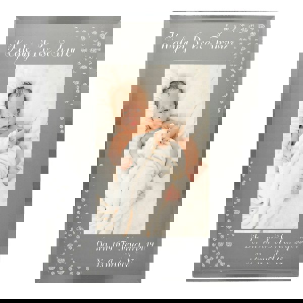 A beautiful diamante effect mirrored Glass Frame. You can personalise this item with any message over 3 lines of up to 25 characters per line. All personalisation is case sensitive and will appear as entered.