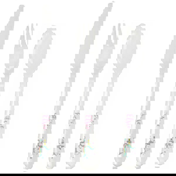 This practical 3 piece set of plastic cutlery featuring a cute baby unicorn design can be personalised with any name up to 12 characters in length.