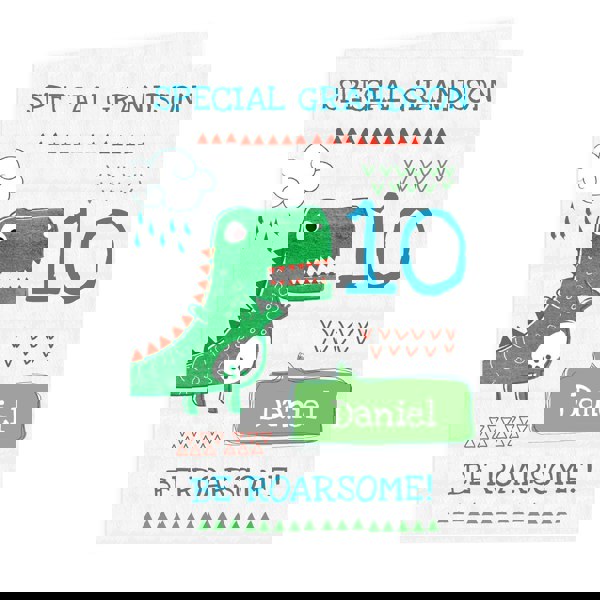 Personalise the front of this card with a message of 20 characters, and age of 2 characters and a name up to 12 characters long.