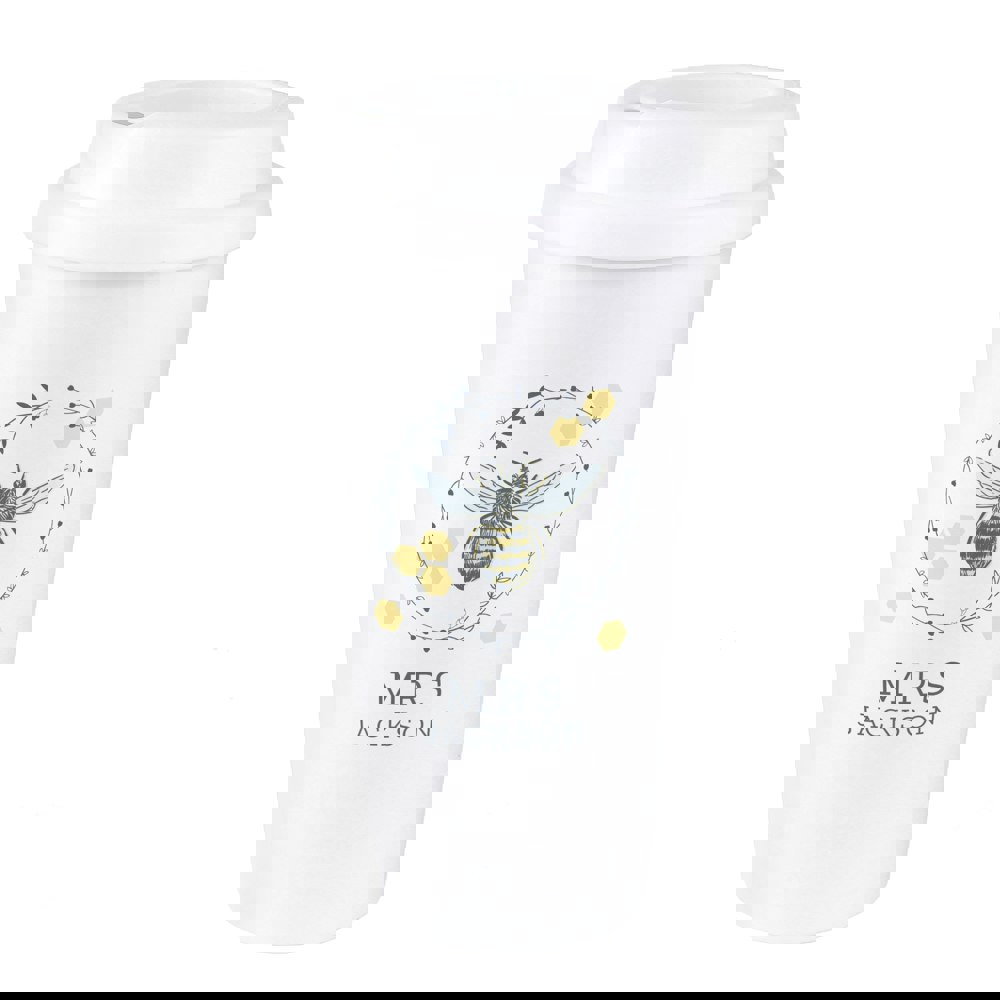 You can personalise this travel mug with two lines of text, each containing up to 15 characters per line.