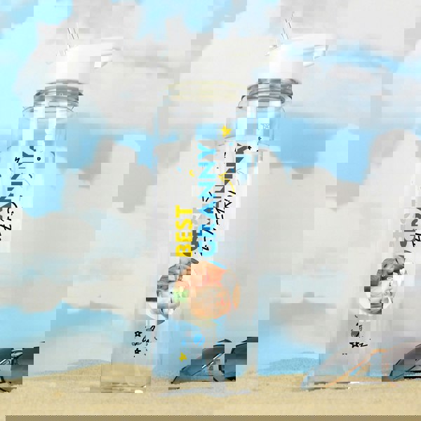 You can add an image to this water bottle as well as a title up to 12 characters long. (For example Dad, Grandad)