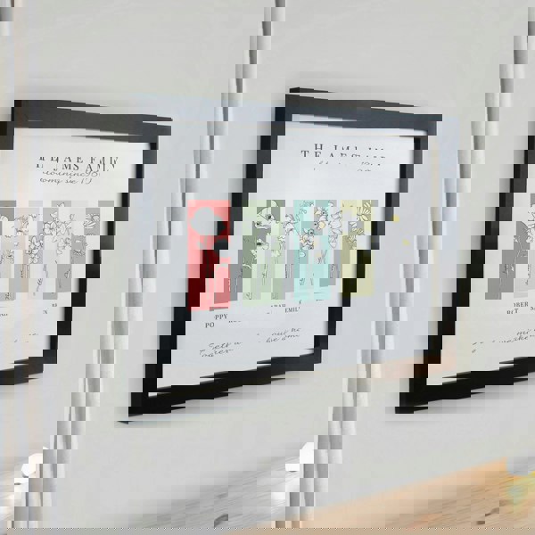 This unique framed print can be personalised with 2 message lines along the top, 5 flowers below, each with a name underneath and finally a message underneath of up to 50 characters.