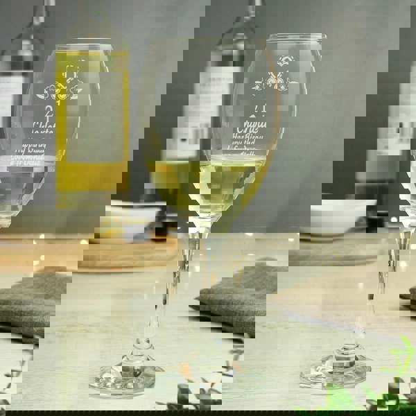 Make this amazing Birthday Craft Wine Glass extra special by adding a special personalisation consisting of, an age up to 2 characters, a name up to 12 characters and a message over two lines of 20 characters.
