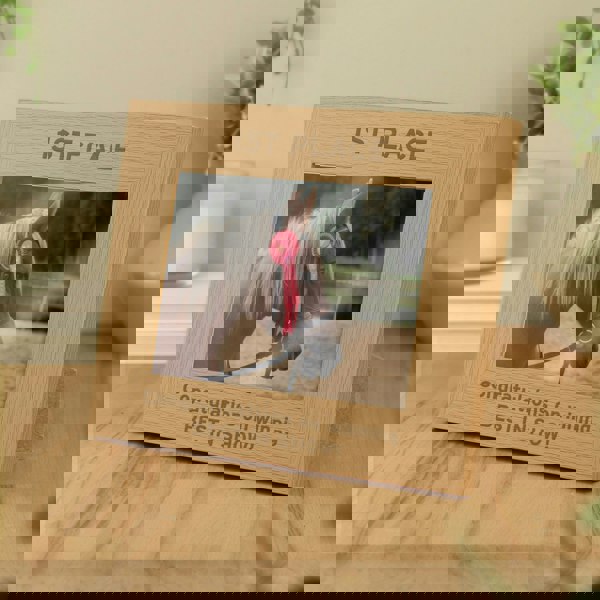 Personalise this frame with 1 line of text, with up to 15 above the photo and 2 lines of text, with up to 30 characters per line below the photo.