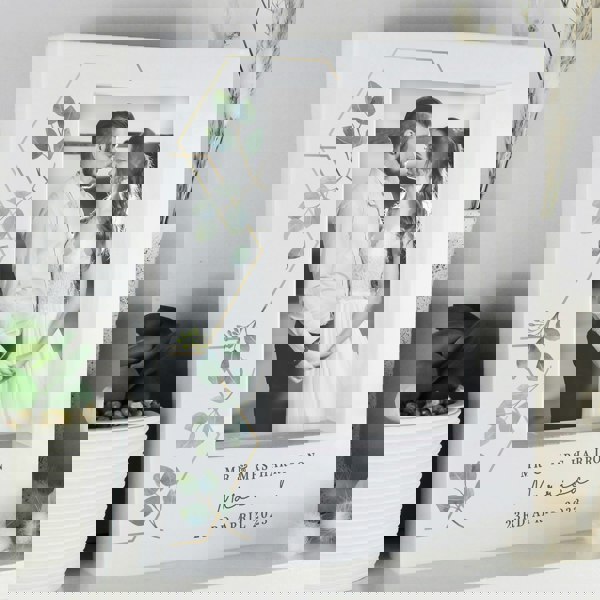 What better way to commemorate a beautiful day than with this botanical 4 x 6 white box photo frame.