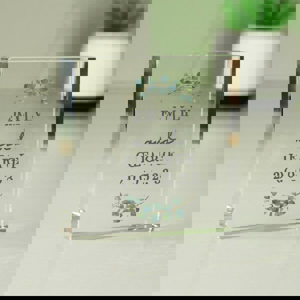 This stylish personalised Botanical Crystal Token is the perfect gift for the newlyweds!