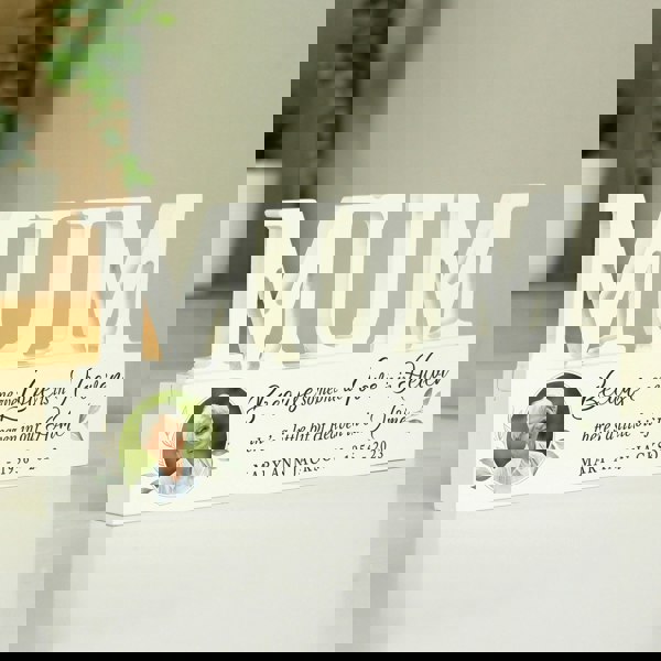 This Personalised Botanical Memorial Photo Upload Wooden Mum Ornament is perfect for remembering a loved one.