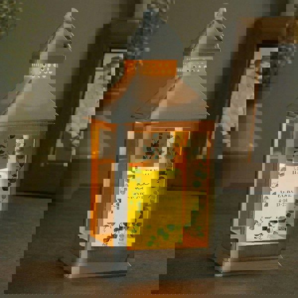 The lantern can be personalised with 4 lines of text, each containing up to 20 characters per line, including spaces and punctuation.