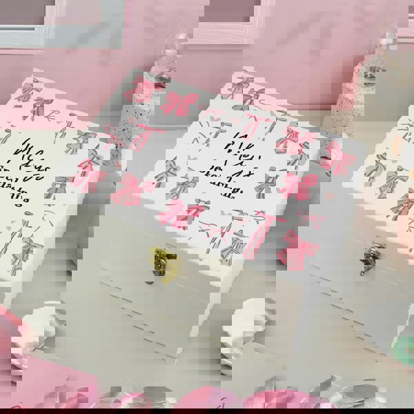 Keep your treasures safe and stylish with our beautifully crafted wooden storage box, elegantly adorned with a charming bow detail.