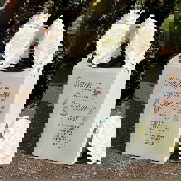 This Personalised Butterflies Appear Memorial Vase is the most perfect way to remember a loved one.