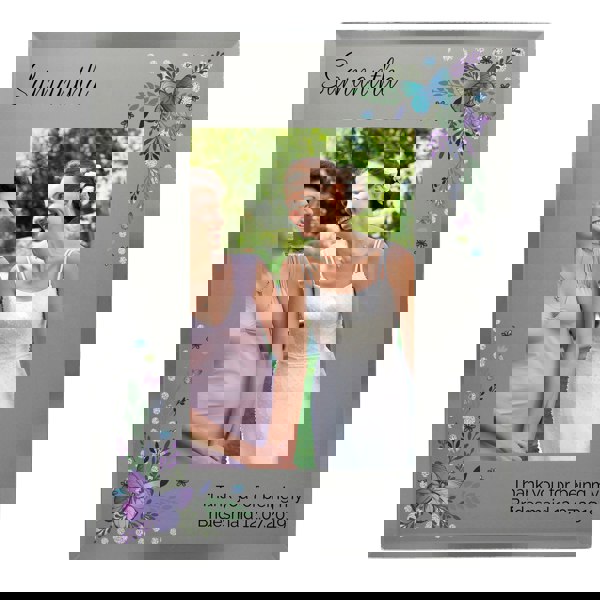 This gorgeous Personalised Butterfly 4x6 Diamante Glass Photo Frame features a gentle mirrored effect and results in a beautiful way to display a photograph.