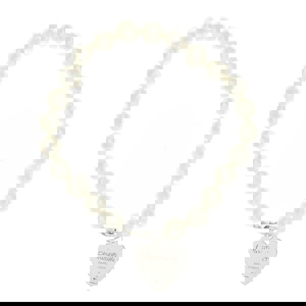 This stunning Personalised Christening Swirls & Hearts White Freshwater Pearl Bracelet is a stylish and unique gift for a Christening.