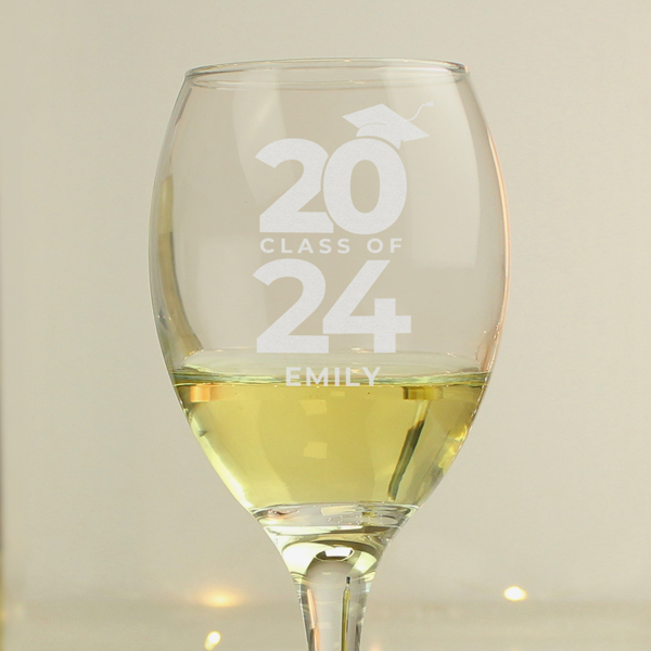 Raise a glass to celebrate your graduation with this personalised Class of Graduation glass.