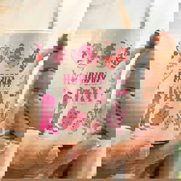 Featuring a vibrant pink design perfect for cowgirls at heart, this mug can be personalised with two lines of up to 12 characters each.