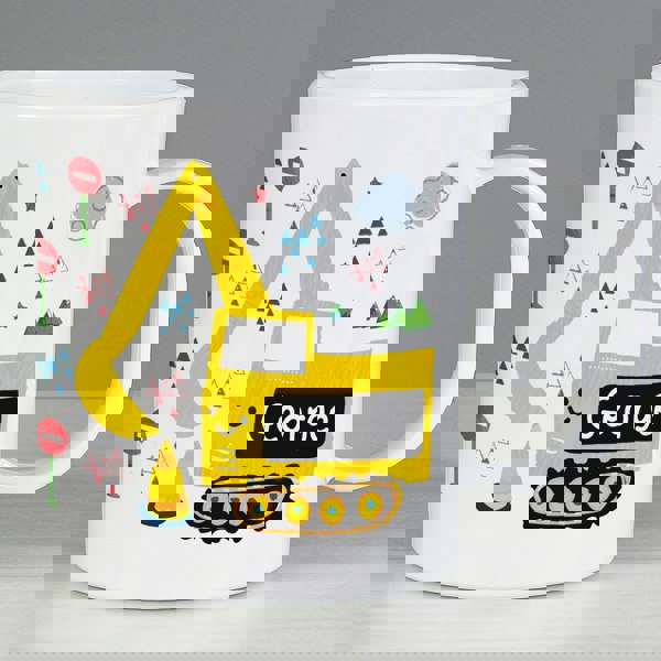 This practical shatter resistant Personalised Digger Plastic Mug is perfect for little ones at dinner time!
