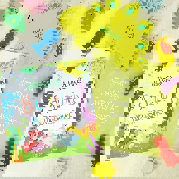 The child's name will also appear on the wooden stacking dinosaur toy, which provides hours of fun and also matches the book perfectly!