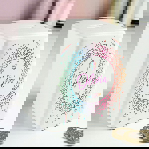 Our Personalised Dreamcatcher Square Money Box makes the perfect keepsake for any occasion.