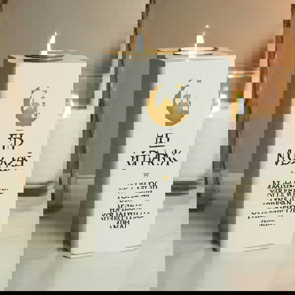 This personalised white wooden tea light holder is a lovely gift to celebrate the end of Ramadan.