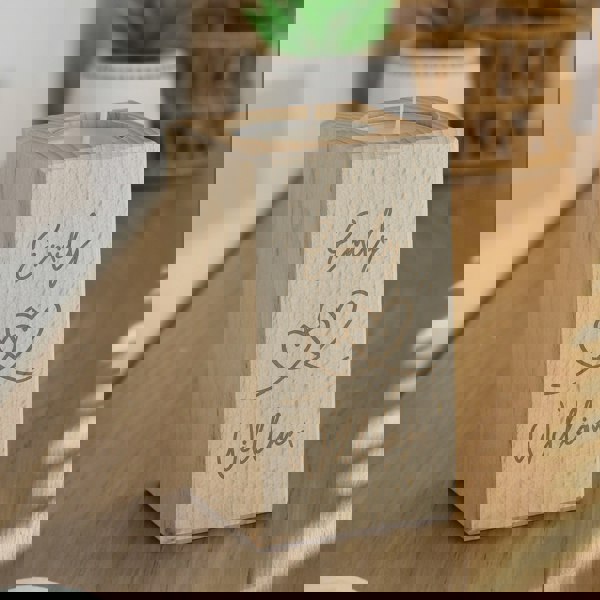 Create a warm glow and an even warmer heart with our beautifully crafted Personalised Engraved Hearts Wooden Tealight Holder.