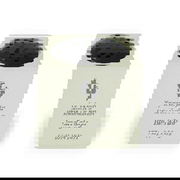 Personalise this Footprints Memorial Vase with a name up to 20 characters and a date up to 20 characters.