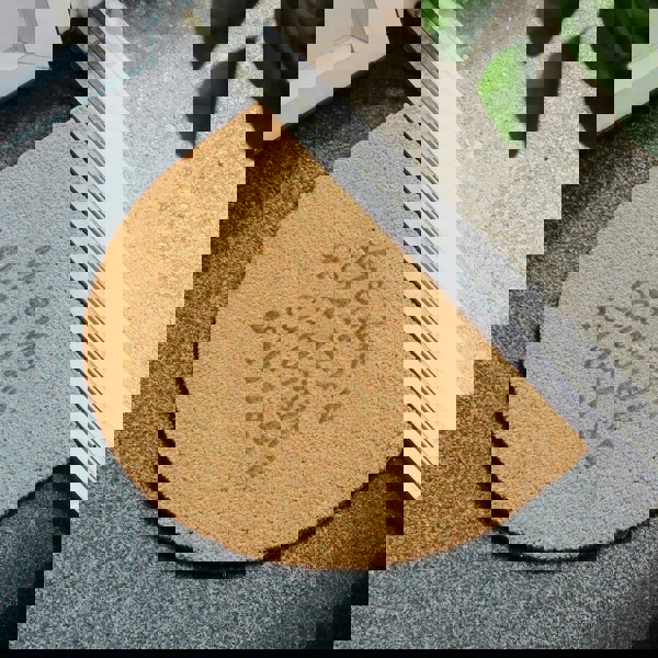 This coir, non-slip half moon doormat can be personalised with four lines of up to 20 characters per line.