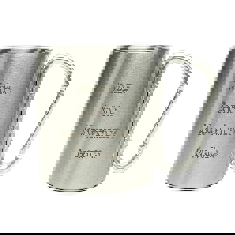 Ensure the recipient is hydrated in style with our personalised free text metal mug. It's perfect for use while out on their travels, or even for use when glamping!