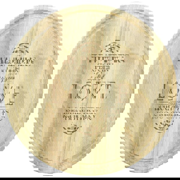 Personalise this Full of Love Round Chopping Board with a couple's or family's surname up to 15 characters and up to 2 lines of 20 characters each for a message.