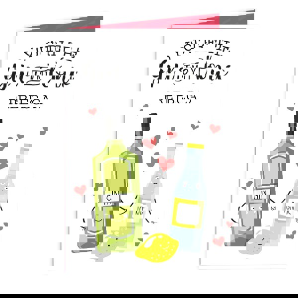 The words 'You're the gin to my tonic' are fixed on the front of the card and cannot be amended.