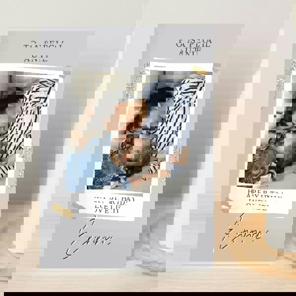 Add your favourite photograph to this lovely grey floral card to make it unique!