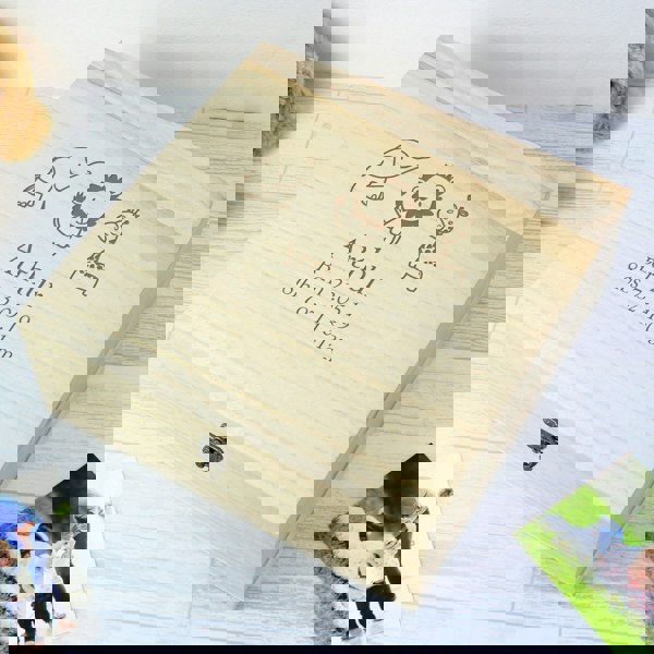 This Personalised Hessian Friends Large Wooden Box is the perfect keepsake box for young children.