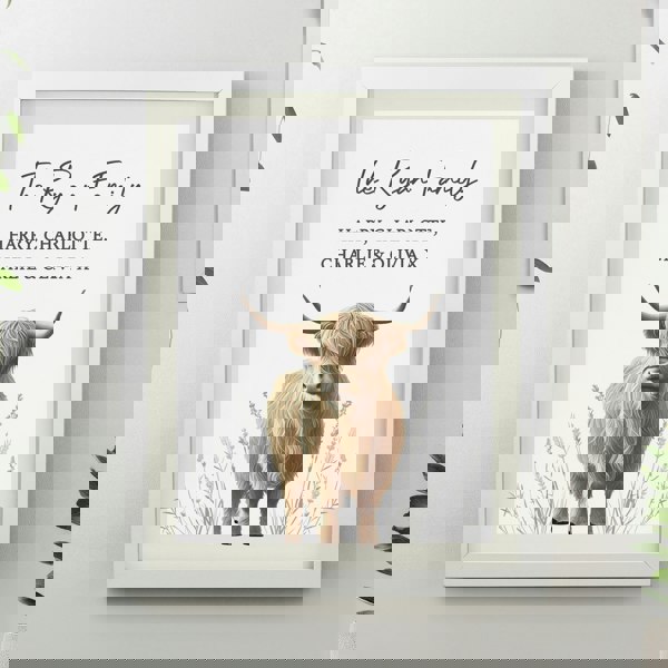 Bring a touch of the Highlands into your home with our stunning Personalised Highland Cow Poster Frame.