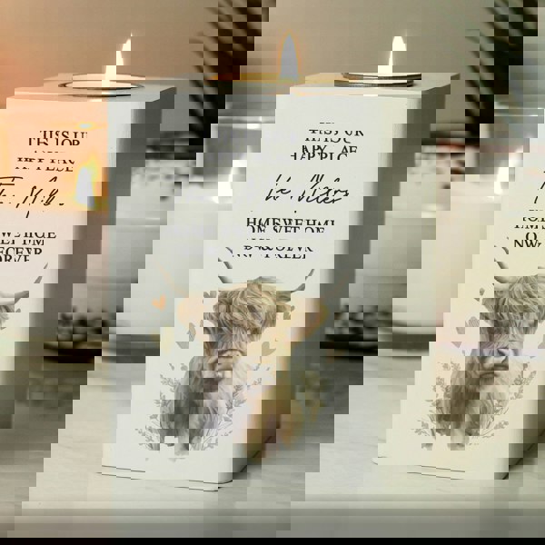 Illuminate your home with our elegant personalised white wooden tea light holder perfect for creating a warm, inviting atmosphere.