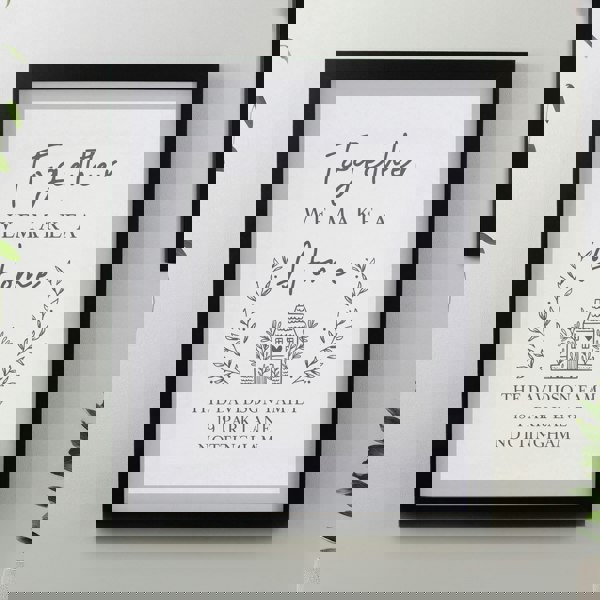 The text, "Together WE MAKE A home" is fixed and cannot be amended