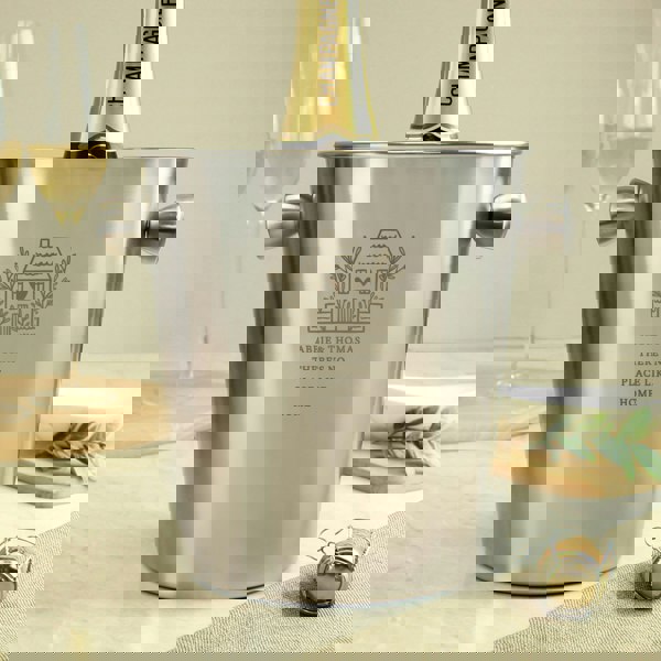 Personalise this stainless-steel ice bucket with up to 4 lines with 20 characters available per line.