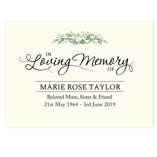This Personalised 'In Loving Memory' card is both beautiful and elegant.