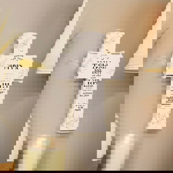 Crafted with care, this elegant cross ornament can be personalised with a message over 5 lines, making it a truly personal tribute.