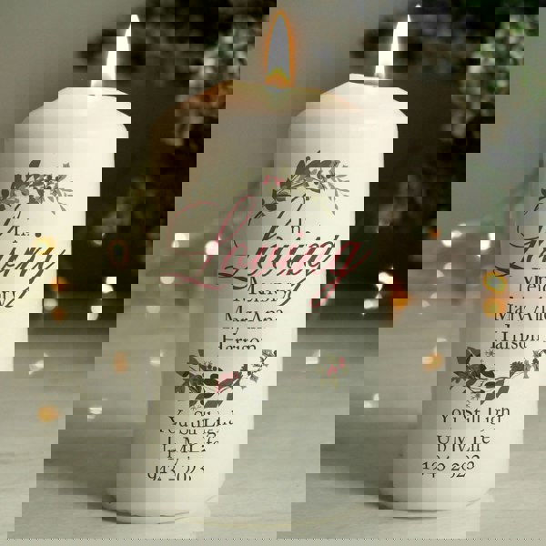The candle can be personalised with 5 lines of text, with up to 15 characters per line. All text is case sensitive and will appear as entered.