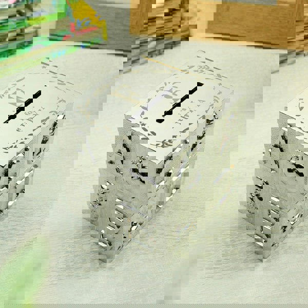 The money box can be personalised with an initial and a name up to 12 characters.