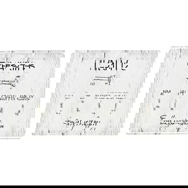 This can be personalised with any message line on the top, up to 25 characters. Underneath each hook can be personalised with up to 9 characters per hook. We can then personalise a final message line of up to 35 characters on the bottom.