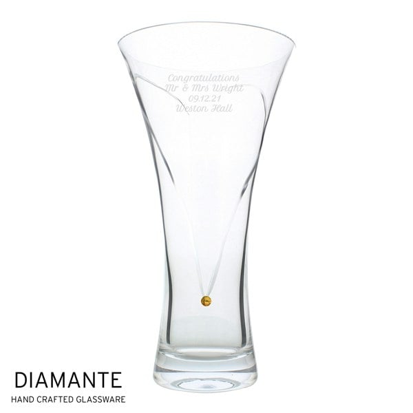 Personalise this Hand Cut Large Gold Diamante Vase with a message up to 4 lines of 20 characters, and also add a further line of up to 4 characters for a year.