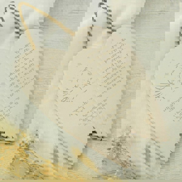 Featuring a beautiful verse on the right, these hanging ceramic wings can be personalised with up to 5 lines of text, as below: